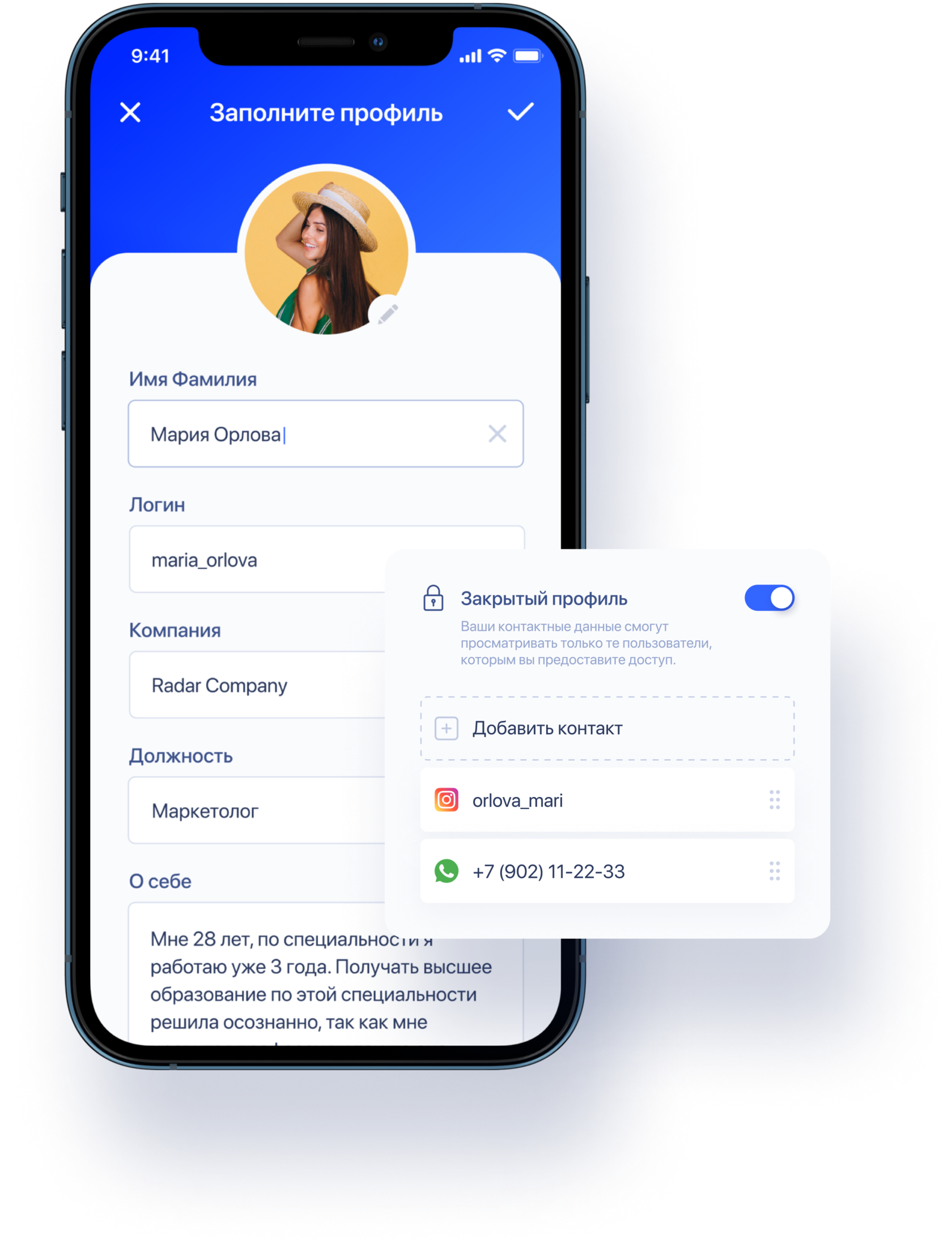 Поделись с окружающими информацией о себе: кто ты, чем занимаешься, укажи свои соцсети