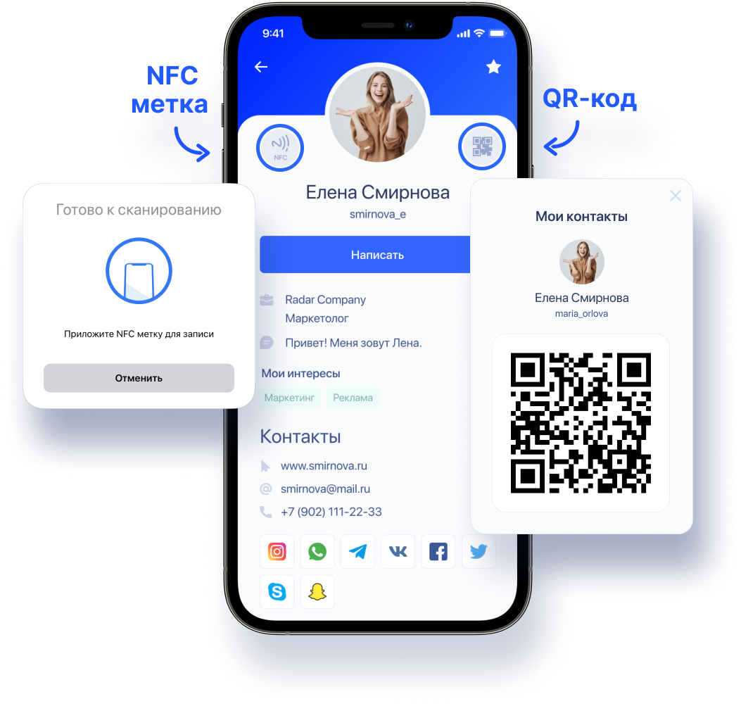 Легко и ненавязчиво обменивайся контактами, соцсетями без бумажных визиток, почты или номера телефона